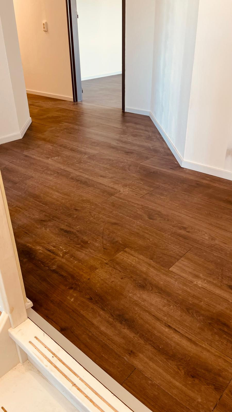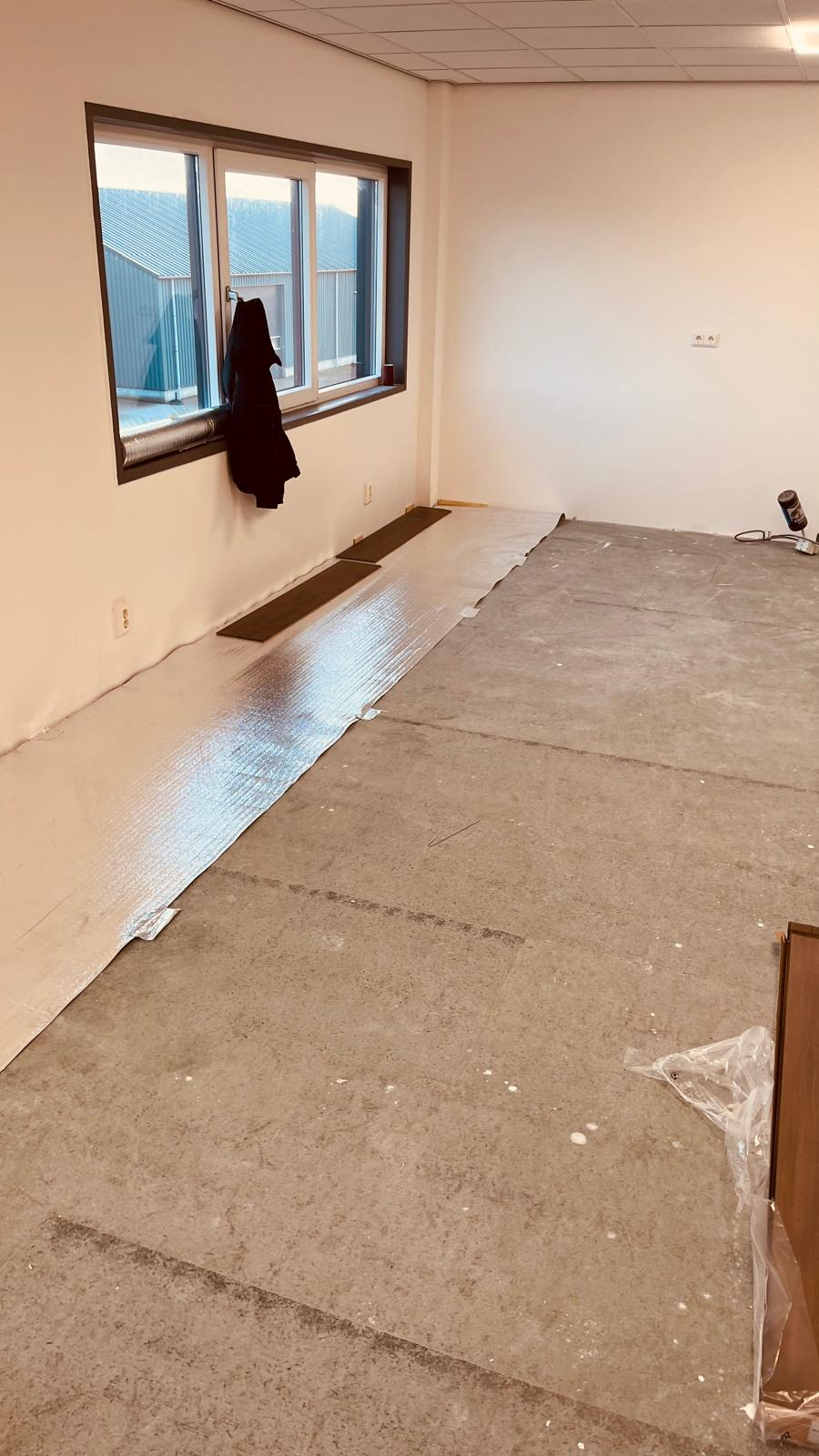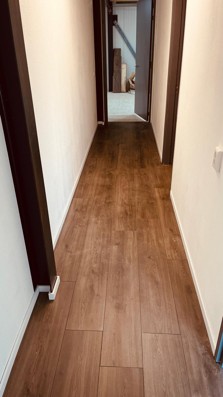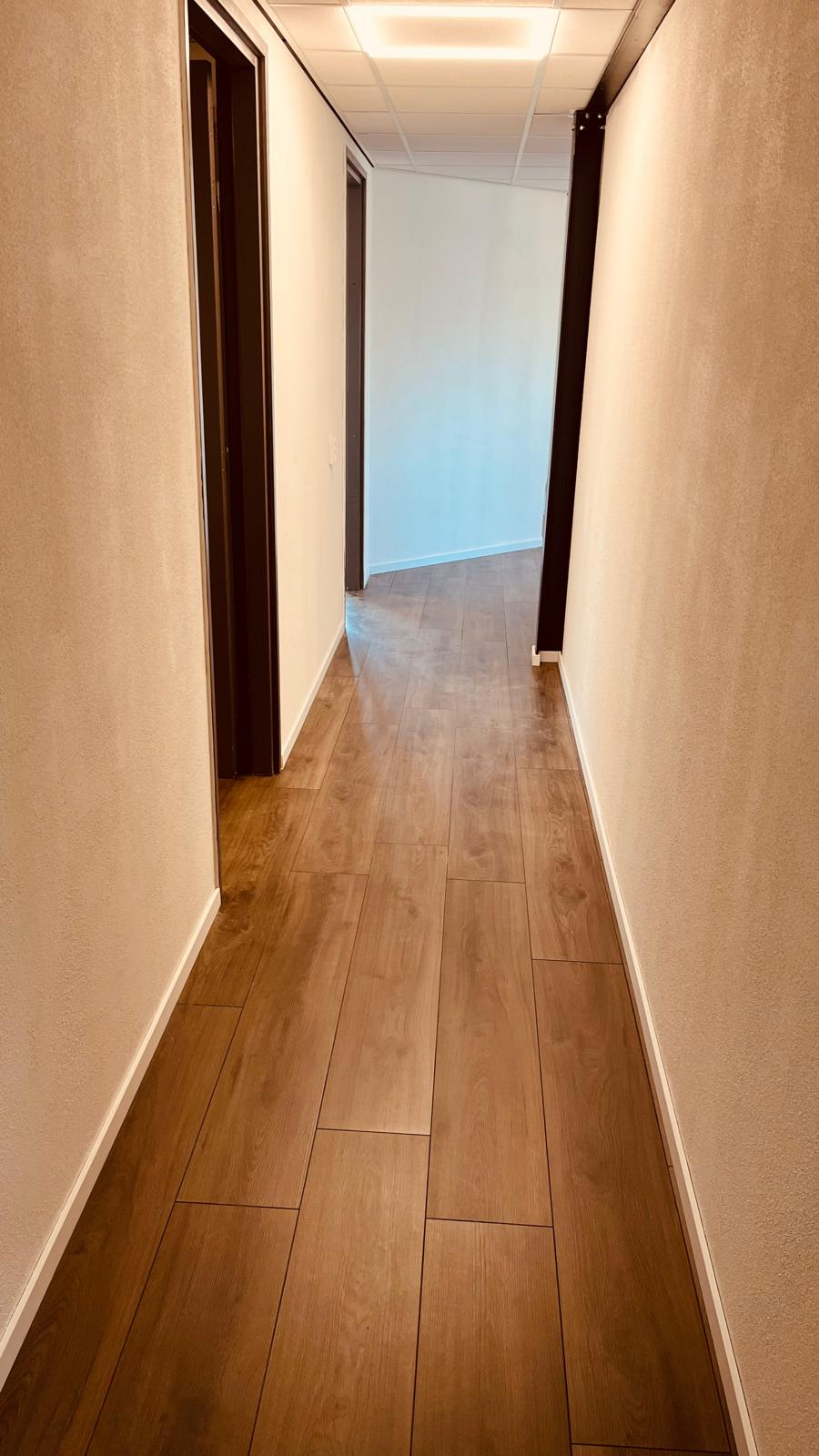 Voor een zakelijke klant legden wij laminaat in meerdere kantoorruimtes, gangen en de kantineruimte. Van kale betonvloer naar een warme, nette afwerking inclusief plinten.